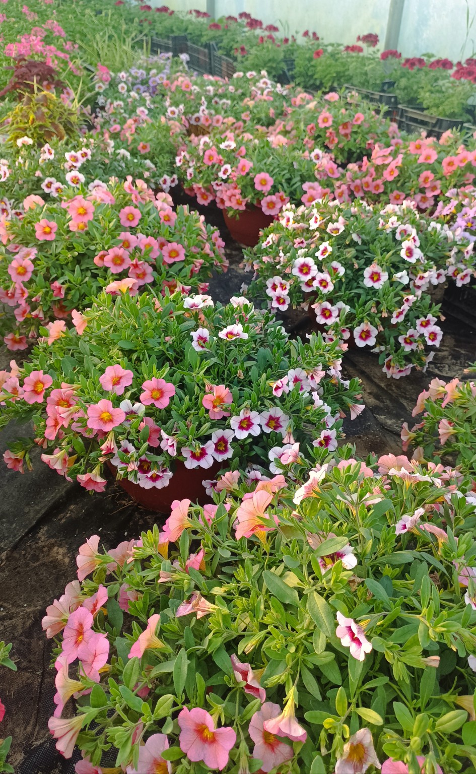 Puķu stādi, sezoniāli audzēti augi un dārzeņi no saimniecības.
